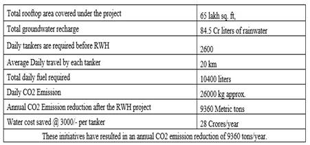 - Which totally cover 6500000 Sq Feet of roof top area and total of 830 borewells recharged with Potential 49.5 Cr Liters of Rainwater.