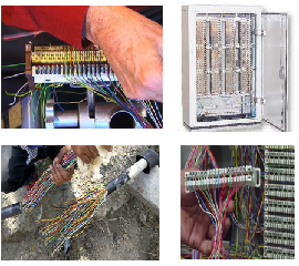 Telephone copper cable jointing and termination off 10 to 250 pair in Krone module and middle joints.